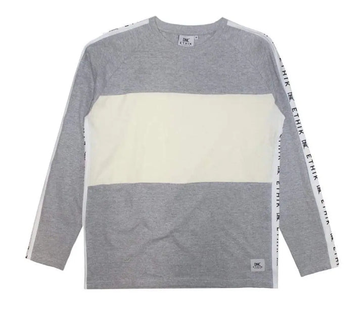 Ethik Block Sport Langarm-T-Shirt Heather Cream (Grau)